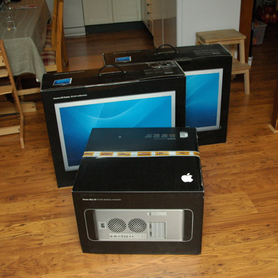 Finally it arrived! My new PowerMac G5! I ordered it almost two months ago and the Mac arrived the day before yesterday. This is just a photodocument of my setup, for the benefit of the readers of csma.