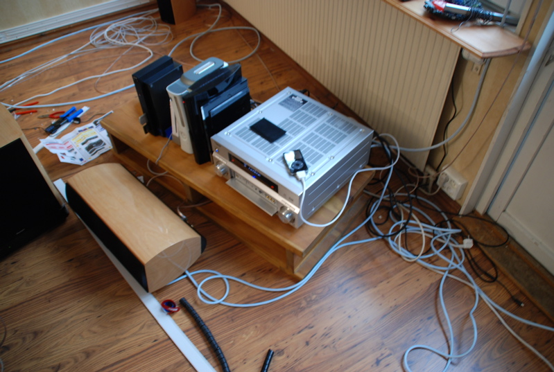 Ja, jag är faktiskt lite missnöjd med en del delar av min nya hembioanläggning. Jag har nu kopplat in allt. Det är en enda röra än så länge, men det sitter ihop i alla fall.
