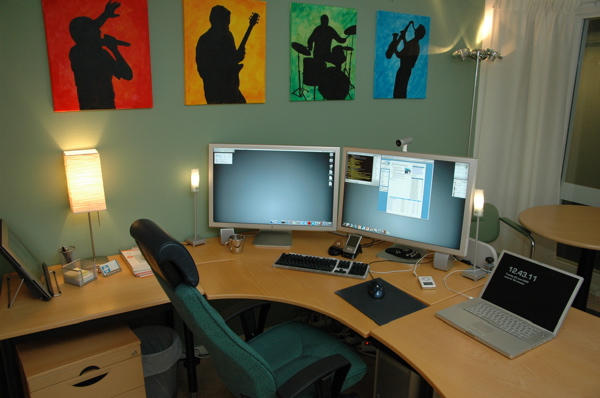 Jag har ju semester nu egentligen, men jag tänkte bara lägga in en liten bild på hur mitt kontor ser ut nu när jag fått iordning lite där. Man kan även se hur tavlorna passade och så.