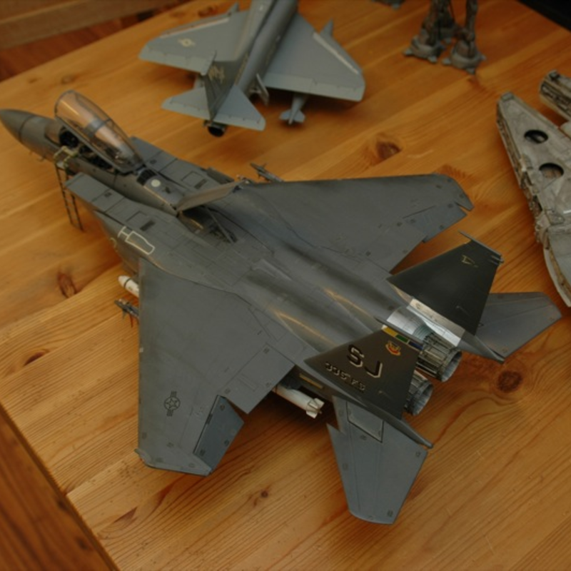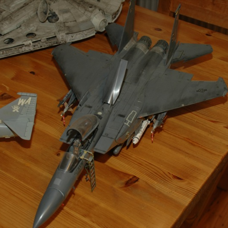 En F15 Eagle och en F4 Phantom. Tamiyamodeller, riktigt trevliga modeller. Mycket skojiga att bygga.
