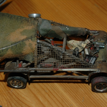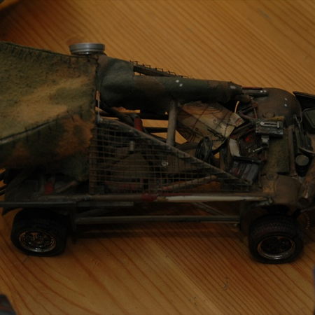 En stridsvagn. Jag skar upp "karossen" och satte in en synlig motor. Tyckte jag var lite händigt då.