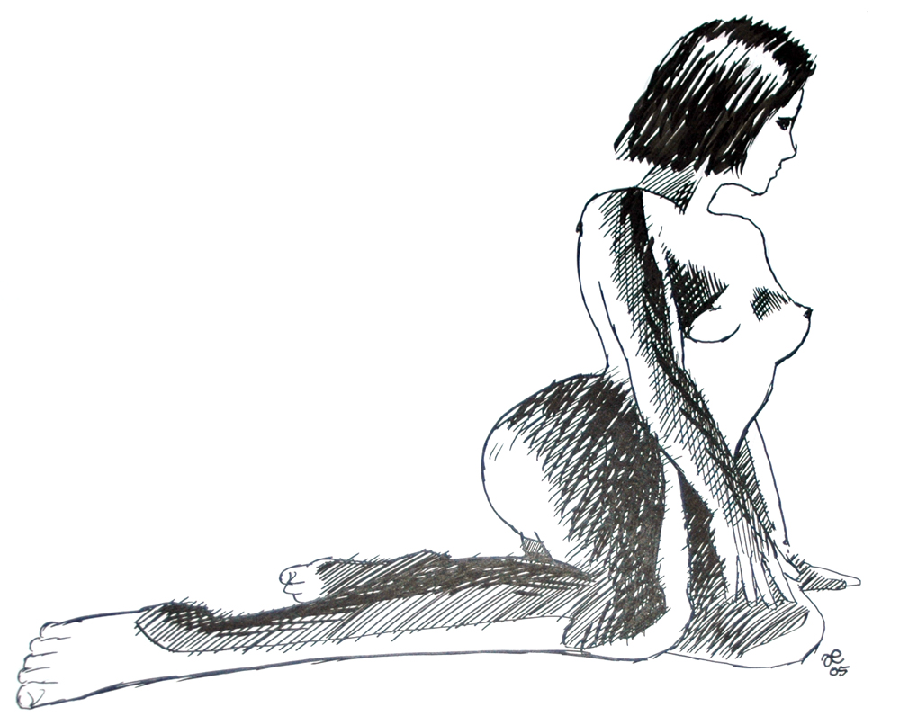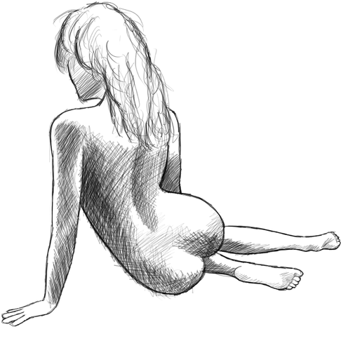 Naken tjej som sitter och funderar