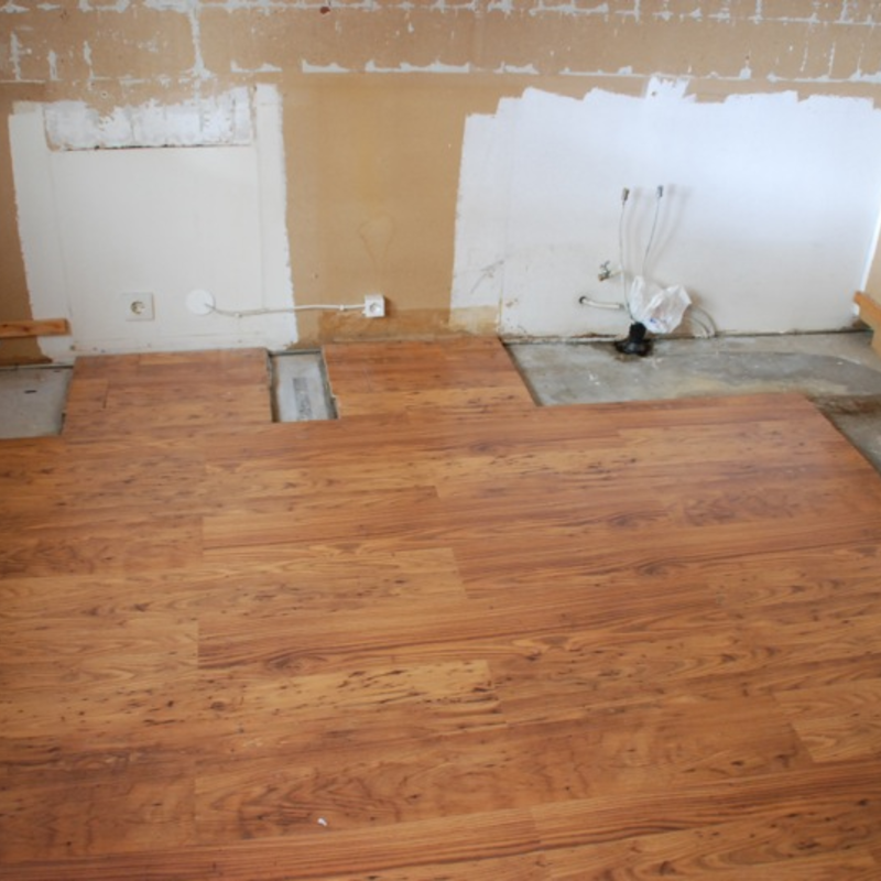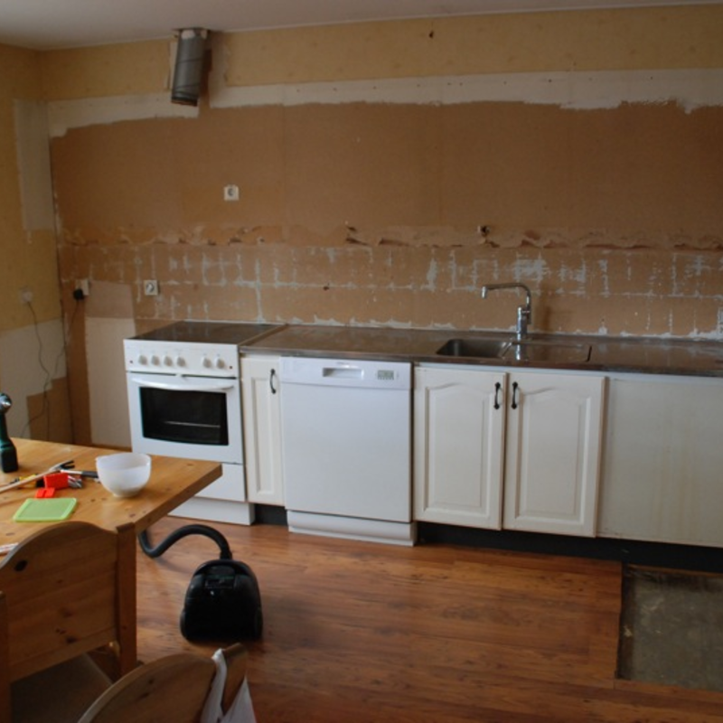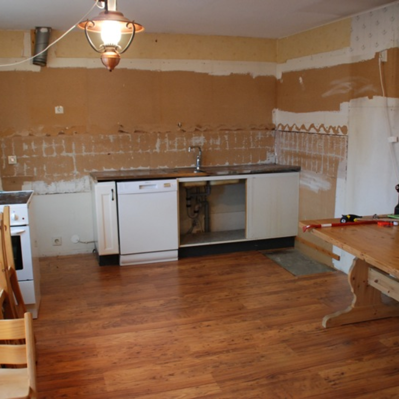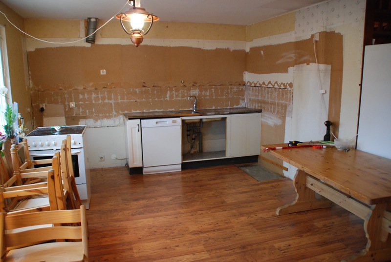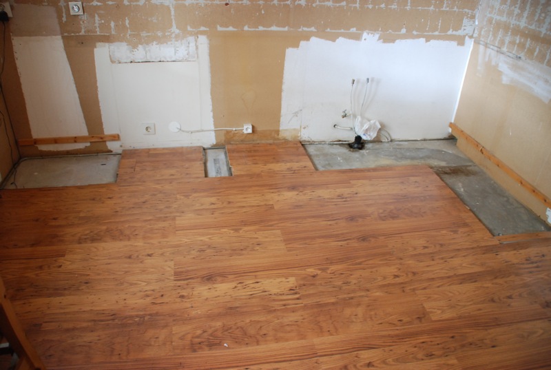 Efter massa slit så är nu köket helt borta. En elektirker har varit och kollat på elinstallationerna och en rörmokare har fixat med dom bitarna. Det är helt rent i köket nu och jag ska lägga om golvet. Tyvärr så har just det här golvet utgått så antingen så får jag sno golvet från sonens rum eller köpa ett annat likadant golv, men med annan ytstruktur.
