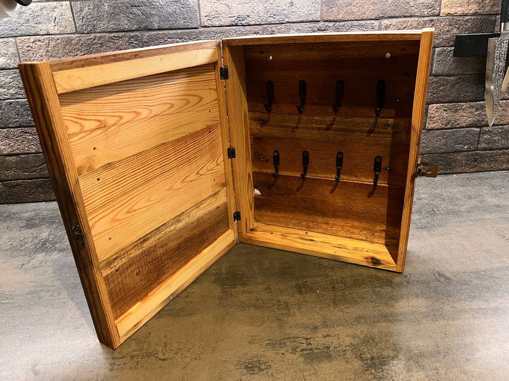 Sonen önskade sig ett nyckelskåp i julklapp, så var bara att bygga ett! Blev rätt så nöjd faktiskt, hoppas han blev det med! Det är graverat med loggan till hans företag och byggt av virket till en gammal bänk han byggde i slöjden eller något sådant av trallvirke, så det är lite skoj