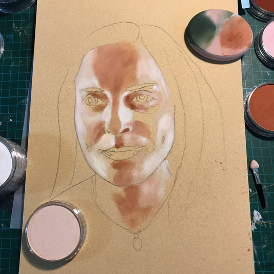 Pappret är Senneliers pastellpapper, och jag har lite blandade känslor kring det. Det är väldigt grovt med en sandpapper-liknande yta, men om man jobbar mycket med färgpennor så finns det en risk att man råkar slita loss bitar av den ytan, vilket hände två gånger medan jag höll på med det här porträttet. Så antingen så är det så att Faber-Castell-pennorna är lite för hårda eller så gör jag fel. Eller så är pappret inte så bra som priset skulle få en att tro. Men vi får se hur det funkar framöver.