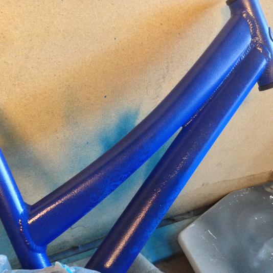 Första offret blev dotterns cykel. Blaze Blue var färgen, plus lite pearlizer och sen glossifier. Trodde den skulle bli ljusare, men är ändå nöjd med resultatet.