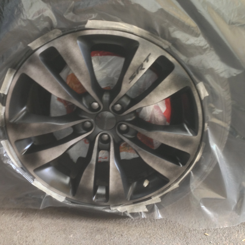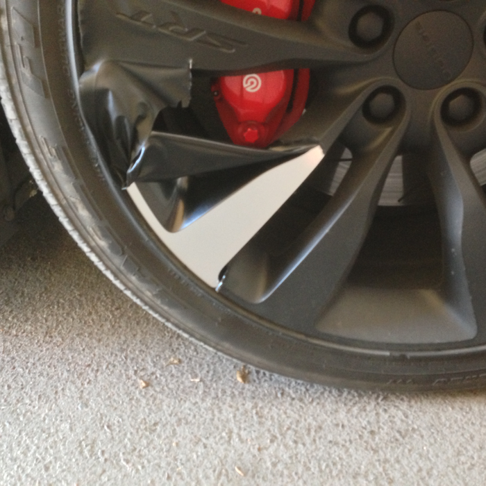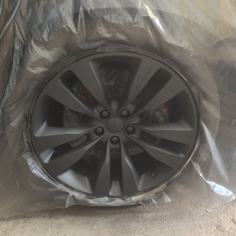 Som tur är så är plastidip lättarbetat, jag maskade igen och tog bort de delar som gått bort och sedan sprayade jag på ett nytt lager och med fingret så jämnade jag ut övergångarna. Det tog sin tid men resultate blev "ok". Jag antar att jag får lov att göra om alltihopa från början vid tillfälle, men det är värt att lära sig. Det här är fälgen med den stora revan, som man inte ens kan se längre. Riktigt nice