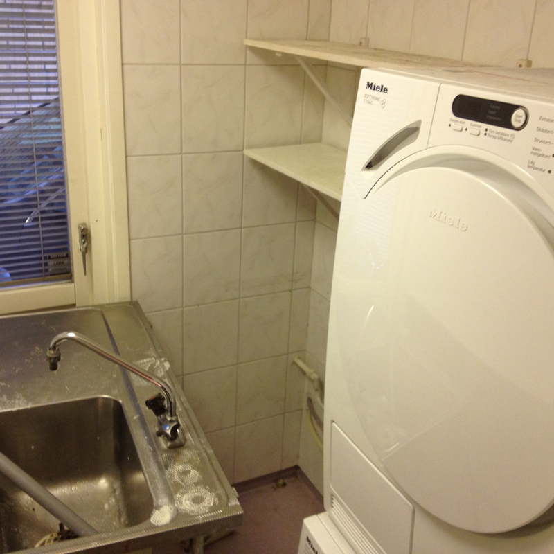 Fuktteknikern sade att fläkten skulle stå här mellan tre och fem veckor, men att det ibland kan bli lite längre. Så nu har vi bara en toalett (intressant på morgnarna) och ingen tvättstuga så vi har lånat tvättstugenyckel av min far som lyckligtvis bor på andra sidan gatan. Så det var ju himla skönt