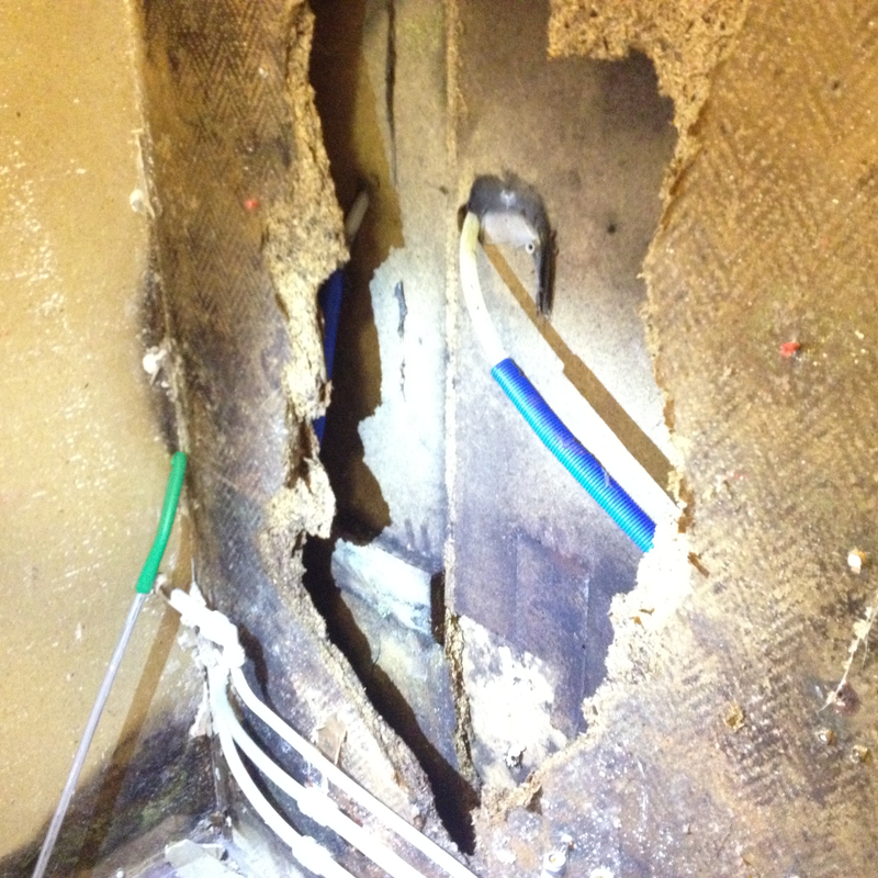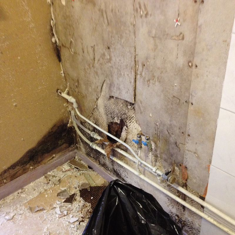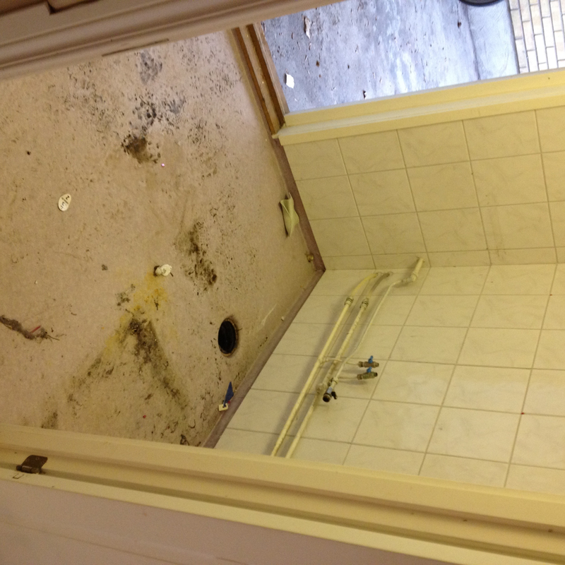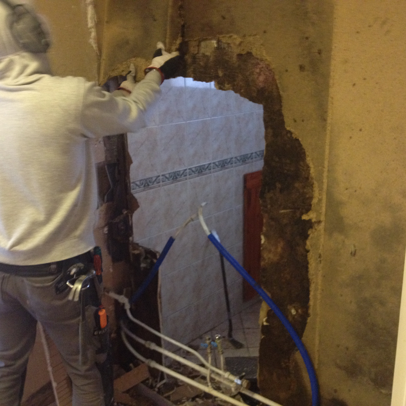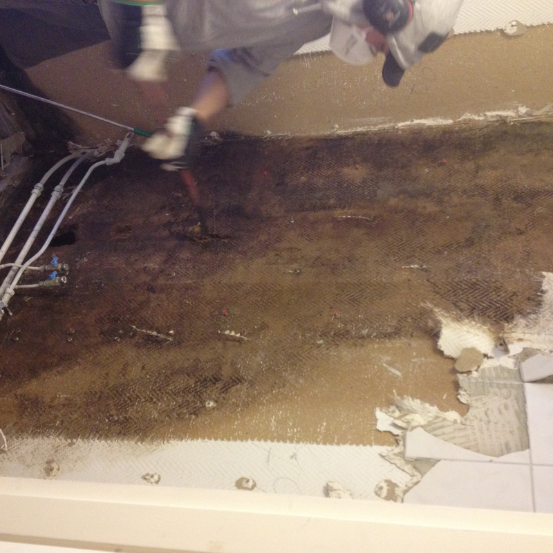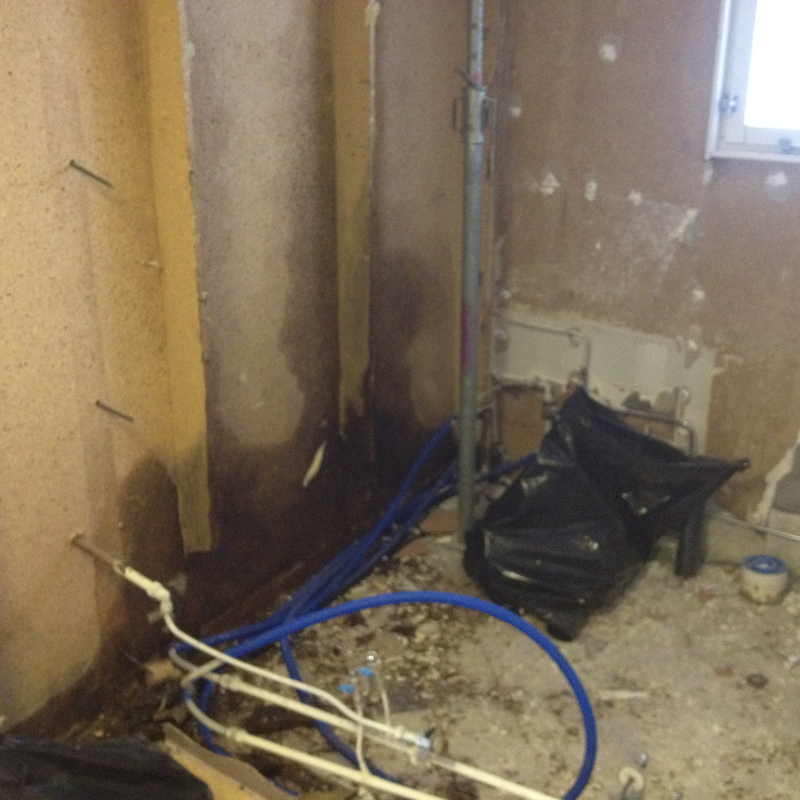 Yes, nu är det påbörjat! Dom har varit här och rivit ut hela toaletten och tvättstugan på nedervåningen! Nu har det stått en fläkt där i snart två veckor som ska torka ur all fuktskada. Killen som rev rummen sade att det var det värsta han sett och sågspånsskivan under kaklet gick att smula sönder med fingrarna. Blä!
