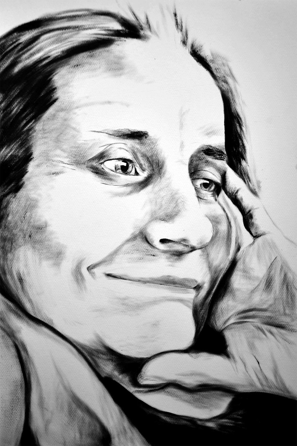 Mitt allra första drybrush-porträtt, vilket är varför det kanske ser lite "ruffigt" ut. Detta är ett porträtt på min svärmor som en juklapp till svärfar