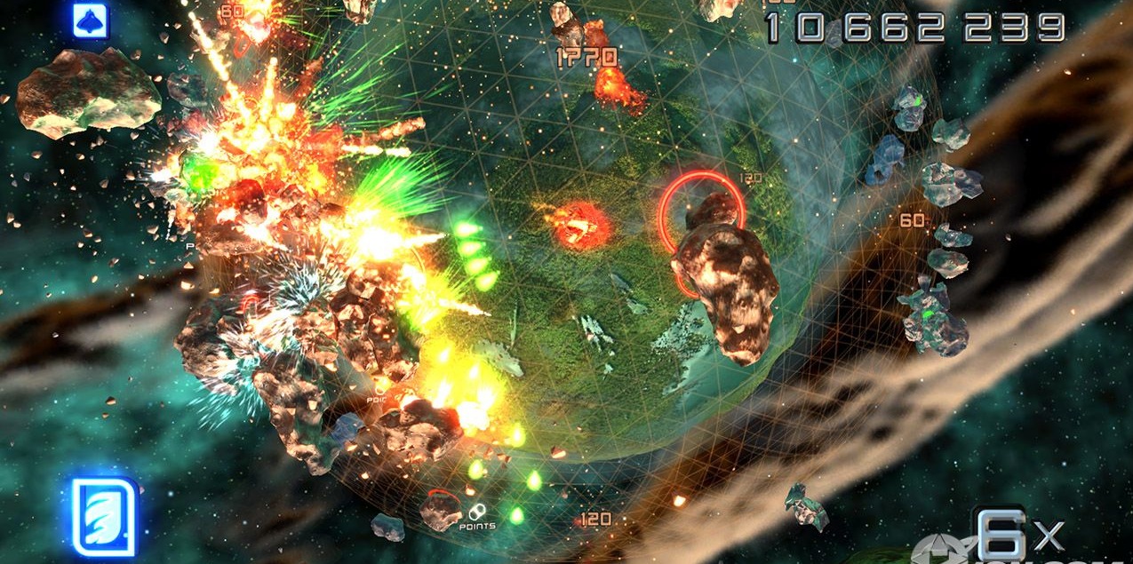Stardust HD är dock det bästa hittills om någon frågar mig, vilket inget gjort - jag säger det ändå. Så det så. Du är ett litet rymdskepp som cirkulerar runt en planet. Planeten bombarderas med asteroider och fiendeskepp i en härlig röra och oftast så har du hundratals objekt på skärmen samtidigt. Allt sker i en "sfär" runt en planet så när du färdas så åker du hela tiden runt planeten och möter objeketen du åker ifrån på andra sidan igen.