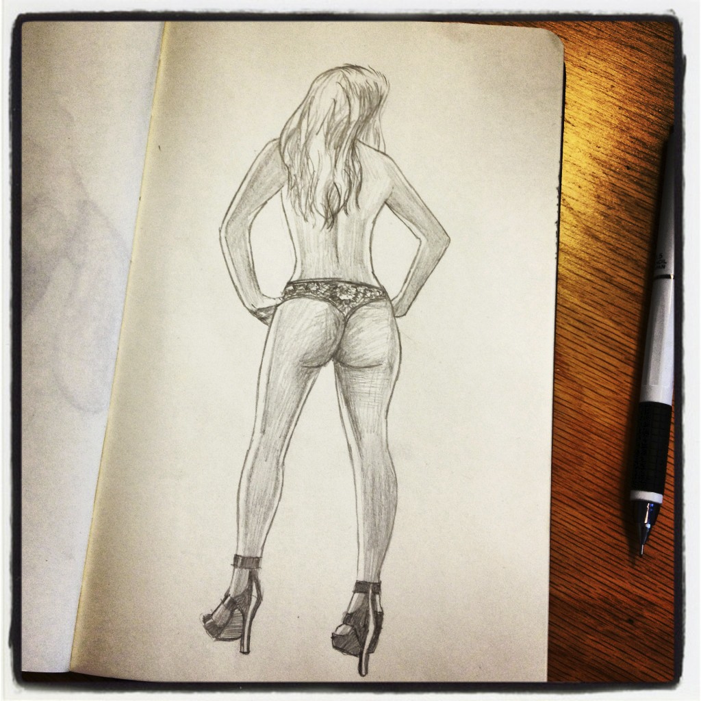 Dagens teckning är en brud som liksom bara står där. Och ser stöddig ut. Kanske.