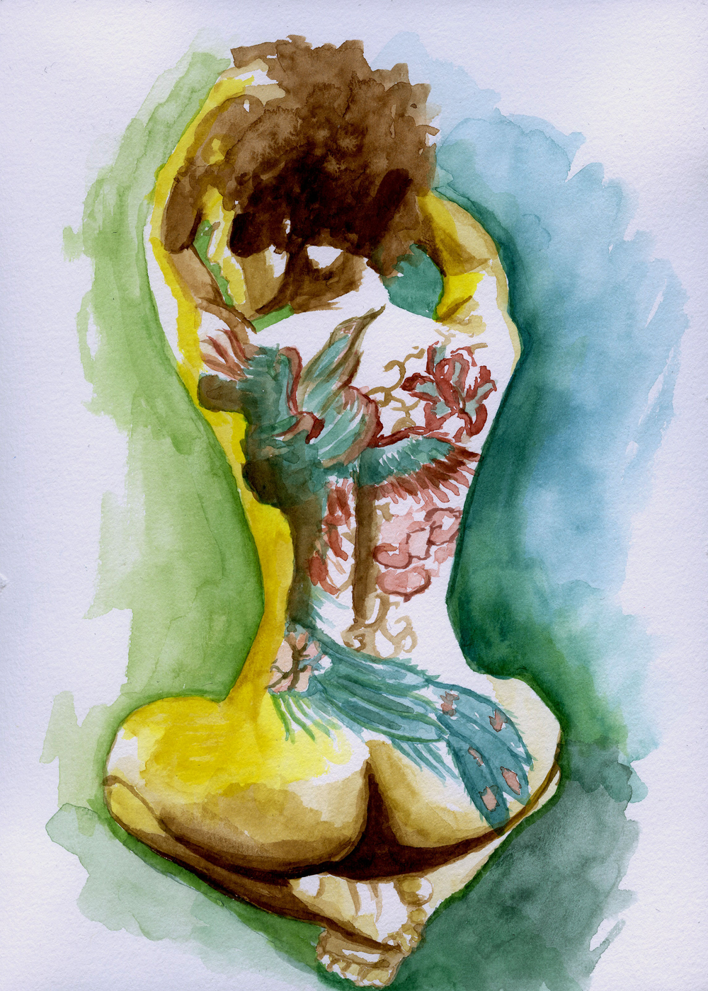 En flicka med en tatuering på ryggen, sexigt? Jag gillar den här faktiskt. smile