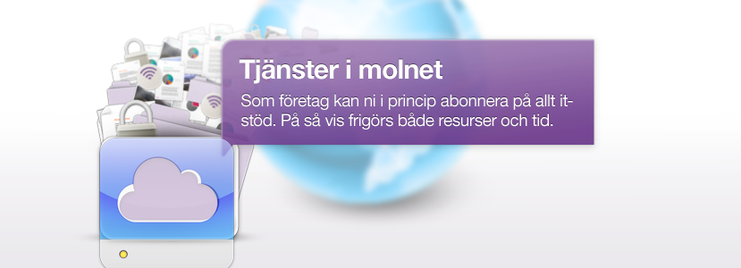 Det Telia vill visa med bilden är ju deras molntjänster. Men det är lite klumpigt gjort. Dom har en platta som det liksom "sprutar upp" saker bakom. Många av de ikoner bakom plattan är samma och dom försvinner liksom bort i fjärran mot en jordglob. Egentligen vill jag inte kritisera hur dom har löst symboliken, utan tänker mest på hur jag skulle ha gjort det.