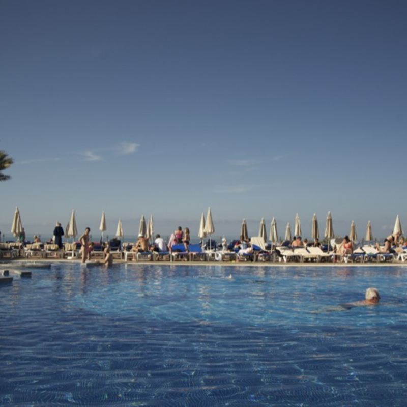 Vi bodde på ett Blue Village-hotell som heter Riu Buena Vista. Vi är väldigt nöjda med hotellet. Det var All Inclusive vilket betyder att all mat och dryck ingår. Och sen har dom saker som Bamseklubben och sådant för barnen. Våra barn är lite för gamla för sådant men så länge man struntade i sådana aktiviteter så var inte "familjeaspekten" av hotellet störande på något vis. Maten var väldigt god med stora buffébord med massor av god mat och tillbehör. Vi hade varannan dag nyttig och varannan onyttig så inte barnen åt pannkakor varje dag.