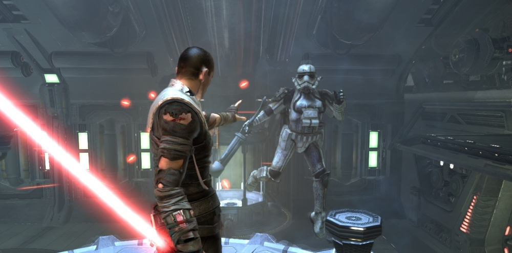 Men när man använder "charged force push" och släpper lös kraften mot en klunga av ett tiotal storm troppers varpå dom flyger ett femtiotal meter, lådor rullar iväg och stora metalldörrar bänds sönder så är känslan densamma. Man är otroligt stark i kraften och även om man måste portionera ut den och hålla koll på mätarna så är det en helt fantastisk upplevelse.
