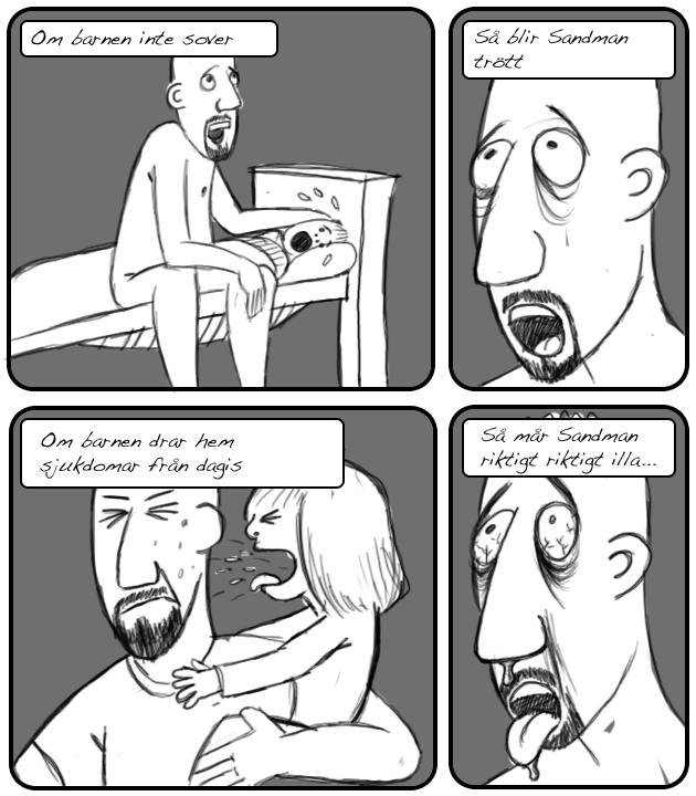Usch, barnen har glömt bort hur man sover om nätterna, samt dragit hem elaka virus från dagis. Eftersom jag inte sovit ordentligt på typ fjorton dagar så är väl mitt immunförsvar försvagat till en liten ensam vit blodkropp inträngd i något hörn någonstans, så resultatet är att jag mår lite risigt. Men med mängder av Kan Jang, vitlökspiller och halstabletter så ska jag nog bli frisk som en apa tills på måndag.