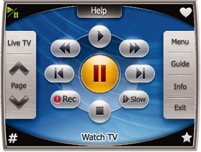 Nej, inte nog med att Logitech Harmony gör det dödsenkelt att starta alla prylar korrekt, den har också ett anpassat gränssnitt på skärmen för just det man ska göra. På bilden till höger ser du hur det skulle se ut om du hade en TV med inspelning till exempel. Och det finns liknande lösningar för DVD, spel och sådant. varje enhet får det gränssnitt som passar bäst för just den. Och volymkontrollerna på fjärrkontrollen går alltid till rätt enhet.