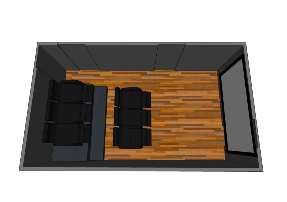 Så här ser rummet ut, det är faktiskt ett riktigt bra rum för en hembio, men det har en hel del begränsningar. En är att de bakre högtalarna har dåligt med utrymme då dörren är precis i hörnet av rummet, så när jag byggde hembion så satte jag upp Canton In-Ceiling högtalare. Dom är inte fantastiska men jag tänkte att det kan säkert duga. Det gjorde det inte.